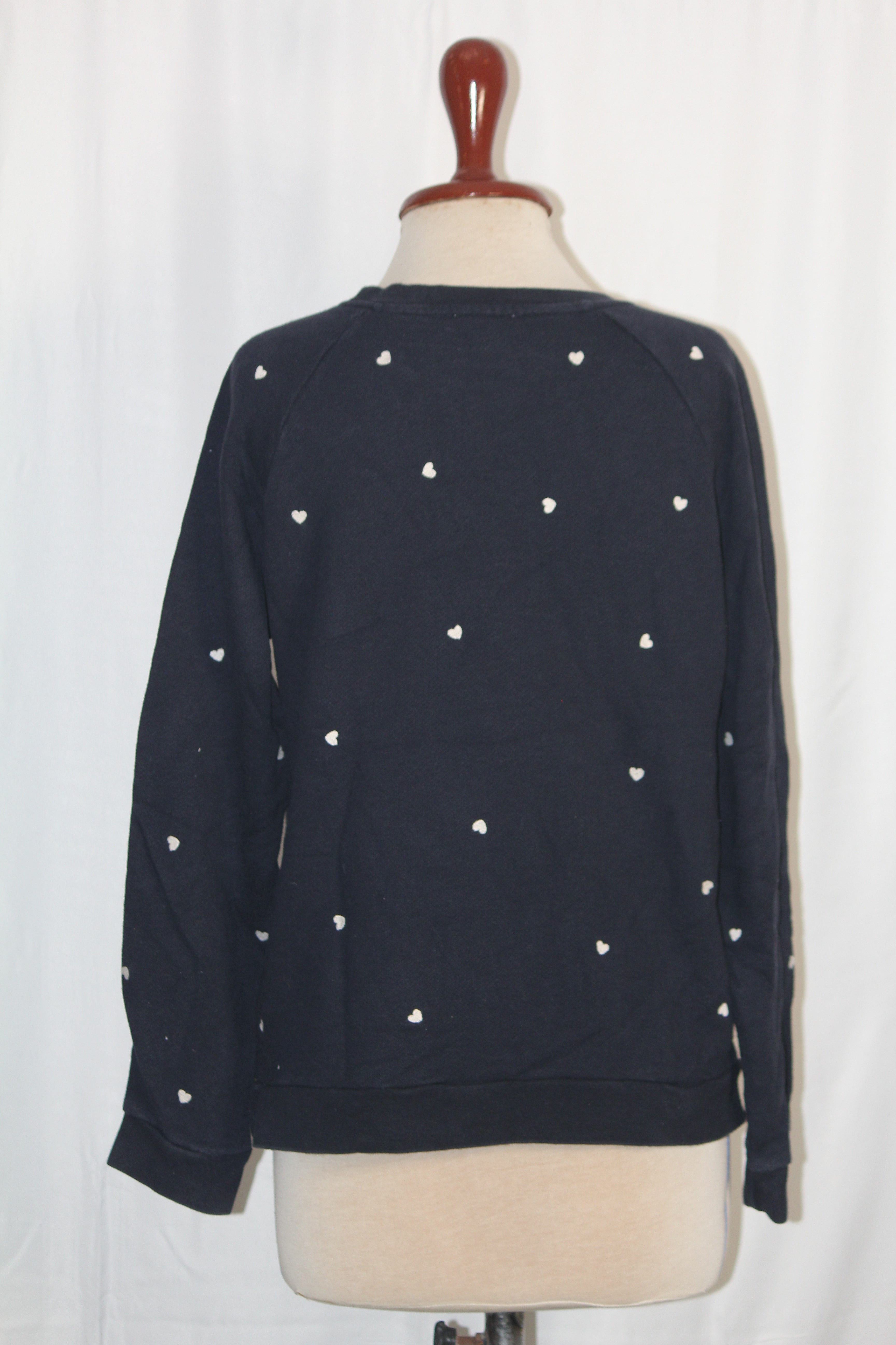 A stylish navy blue sweatshirt from Whistles with cute white heart prints. Perfect for adding a touch of fun to casual looks. Excellent condition.