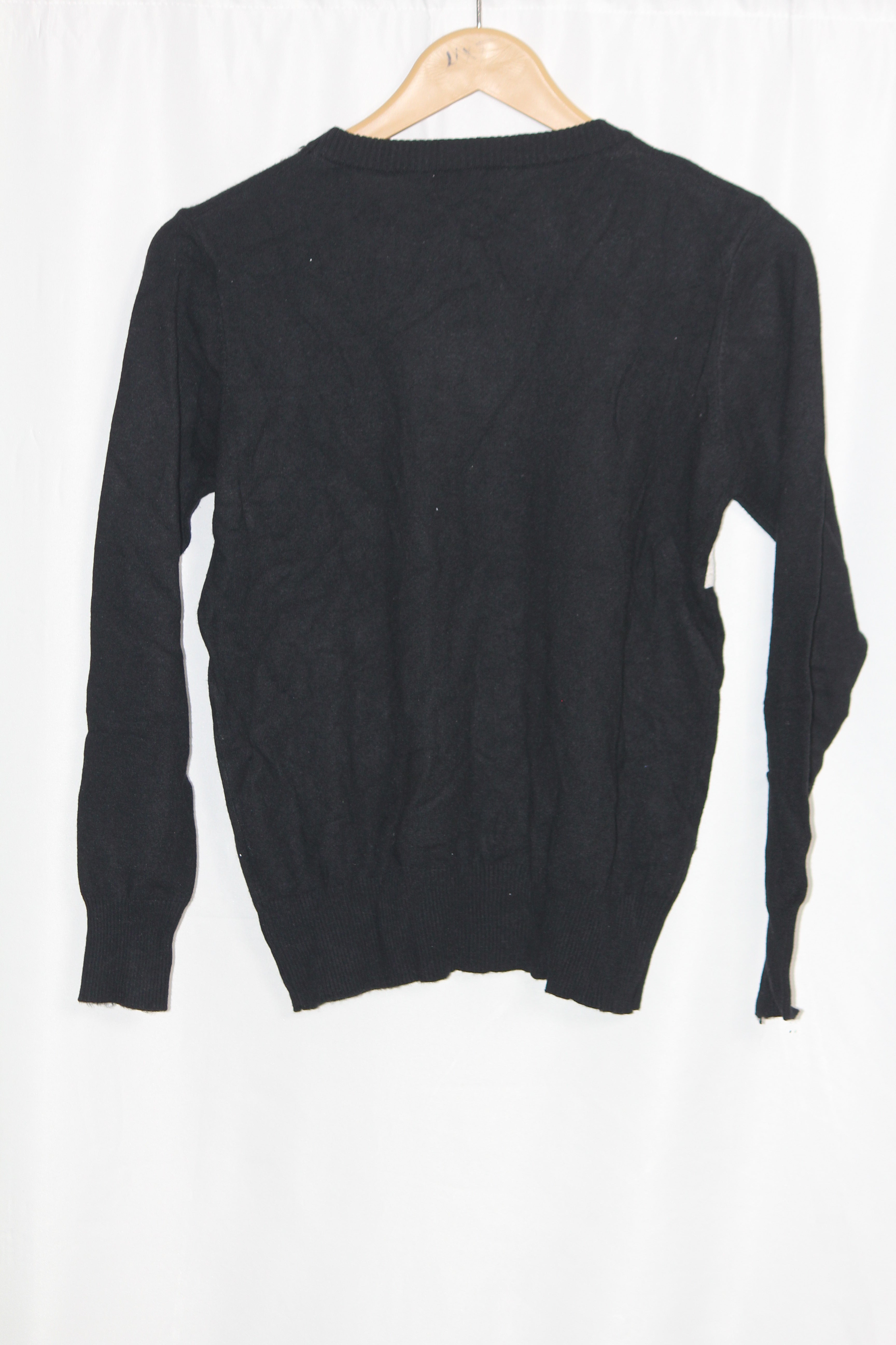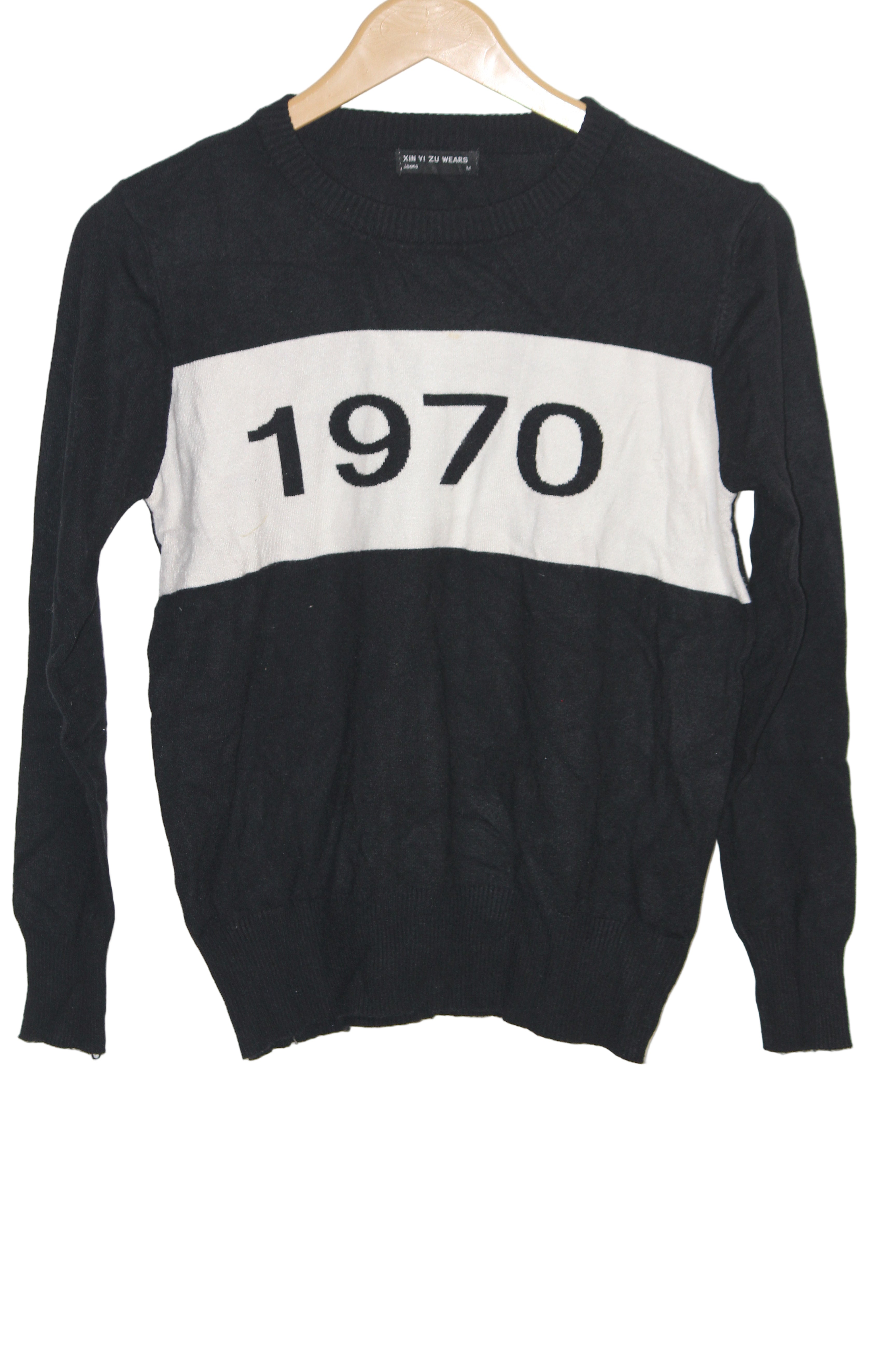 Featuring a trendy black and white design, this medium sweatshirt from Xin Yi Zu Wears is perfect for casual outings. The 20" chest offers a comfortable fit, and it's in excellent condition.