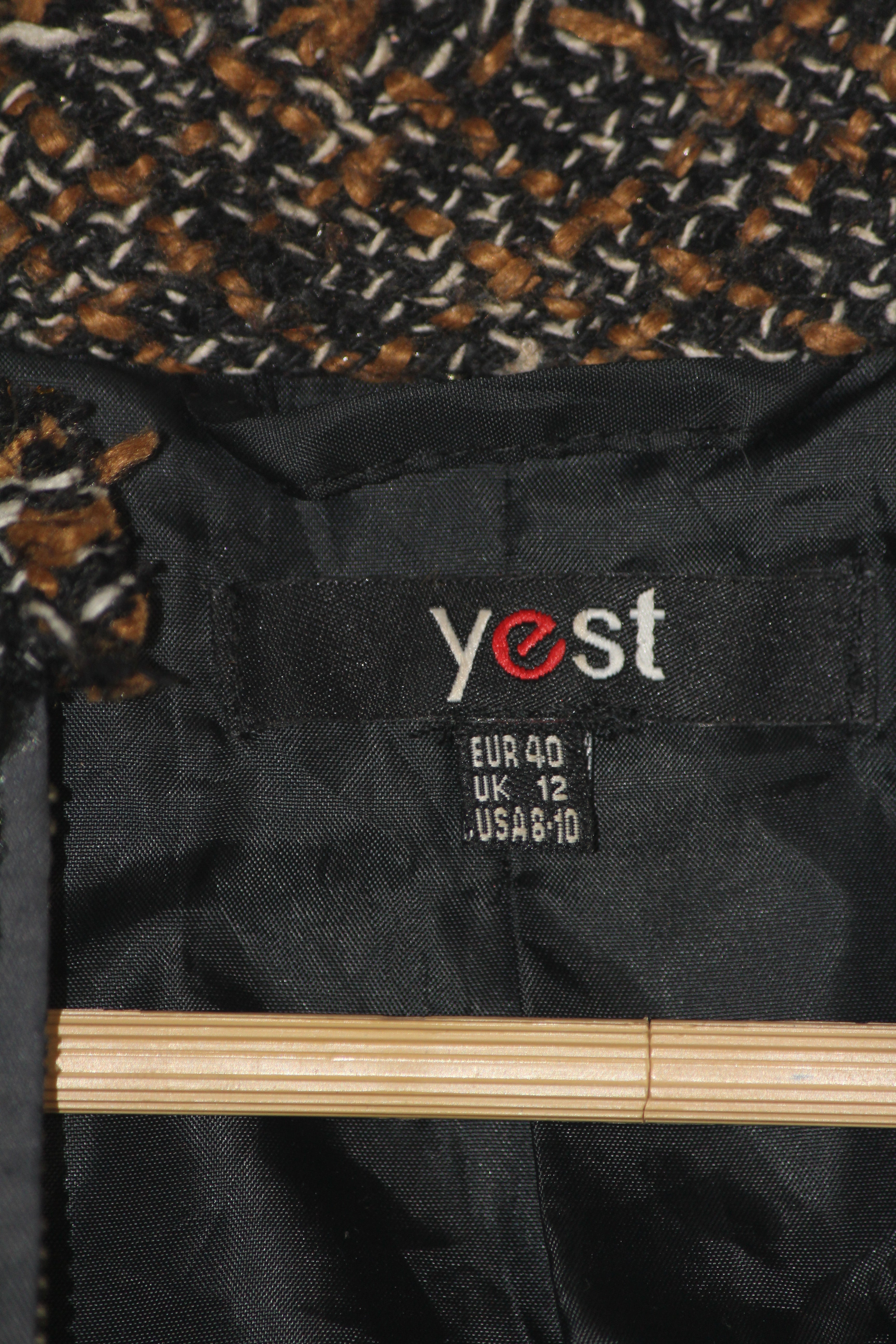 Add a cozy layer to your outfit with the Yest Brown and Black Knitted Jacket. Designed for a small fit, this jacket offers a subtle color contrast for a stylish look.