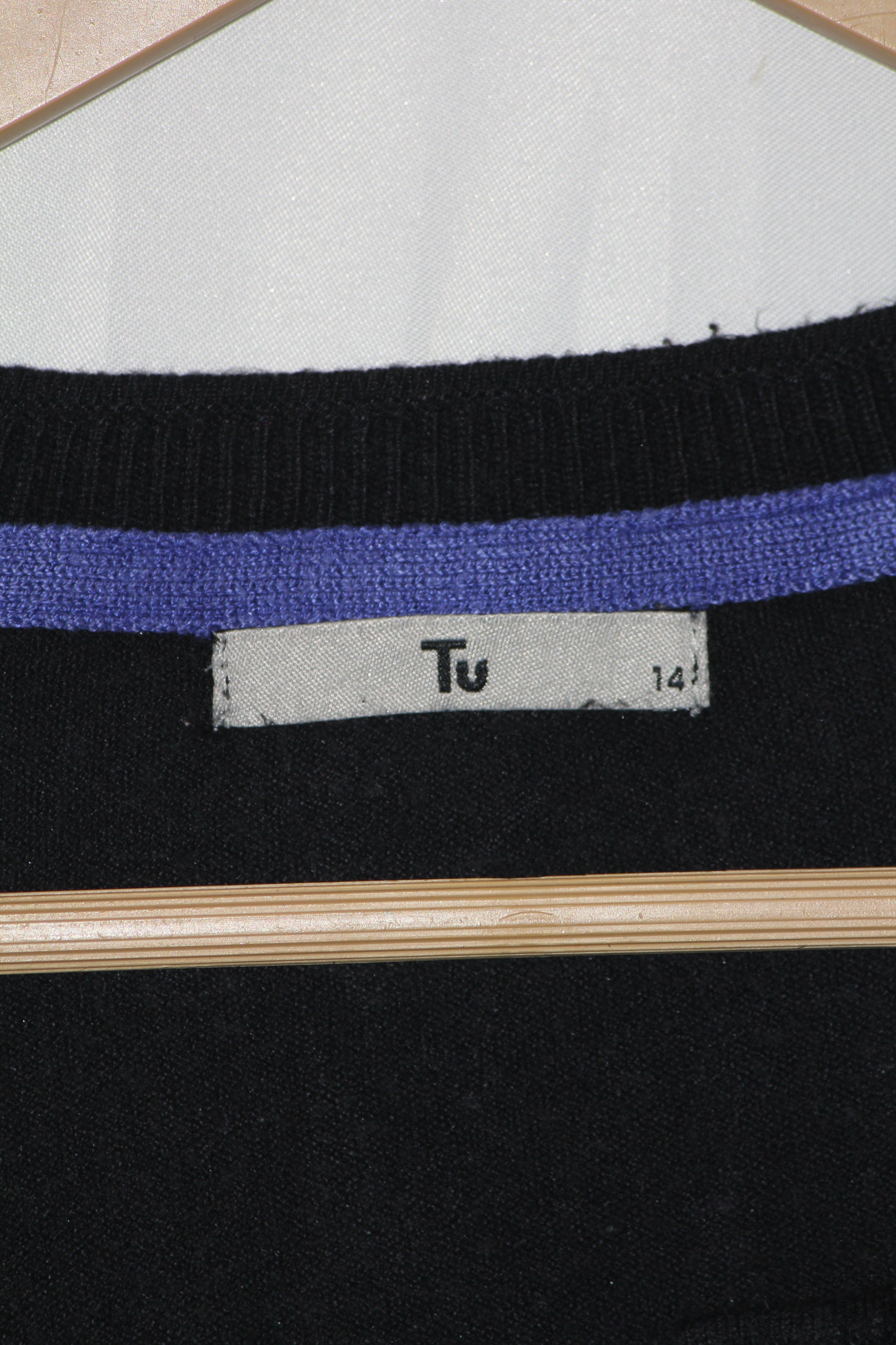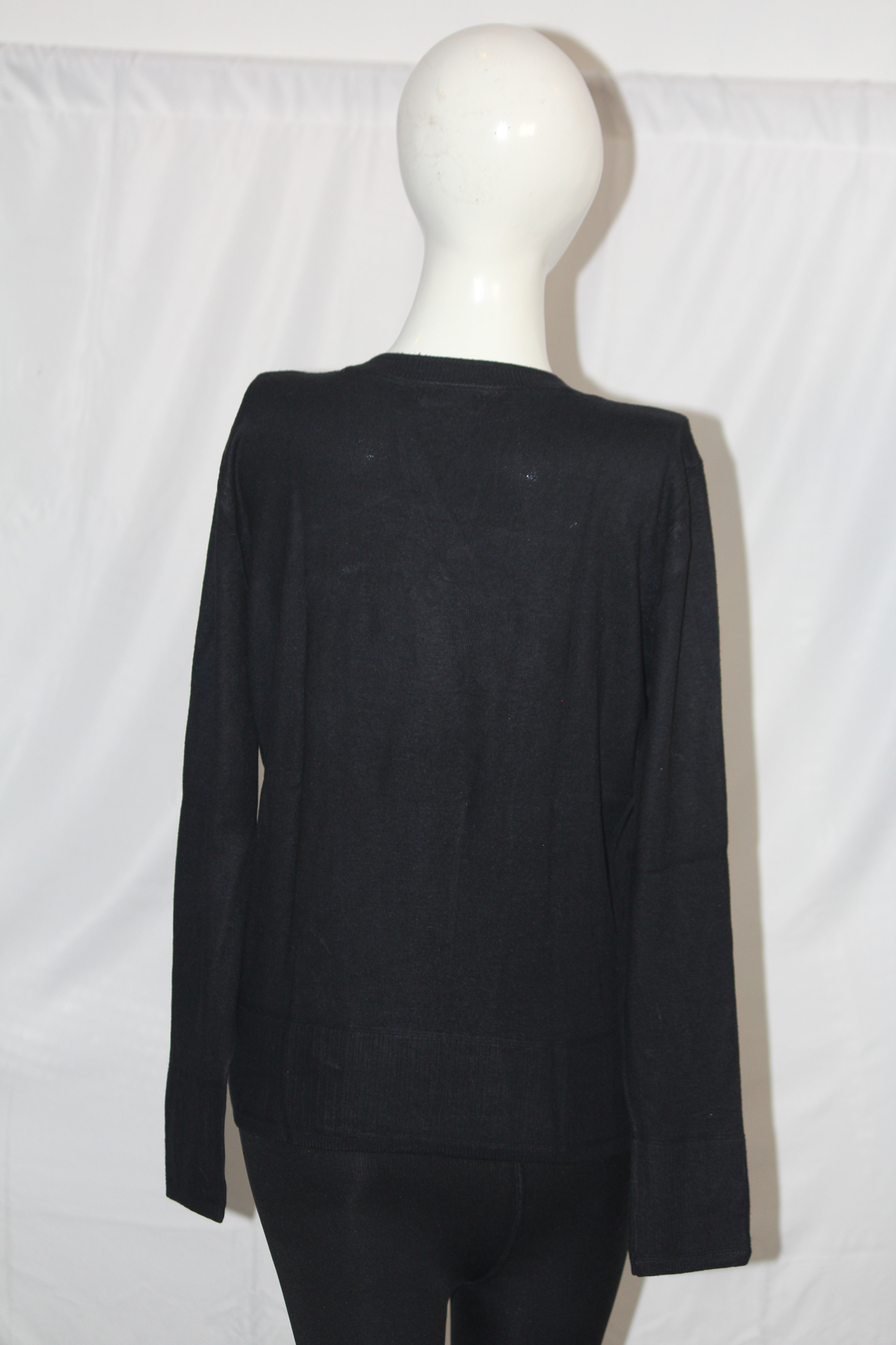 A chic black sweater by Tu crafted from a soft viscose blend. With full sleeves and a smooth finish, it’s your go-to piece for minimal yet sophisticated styling.