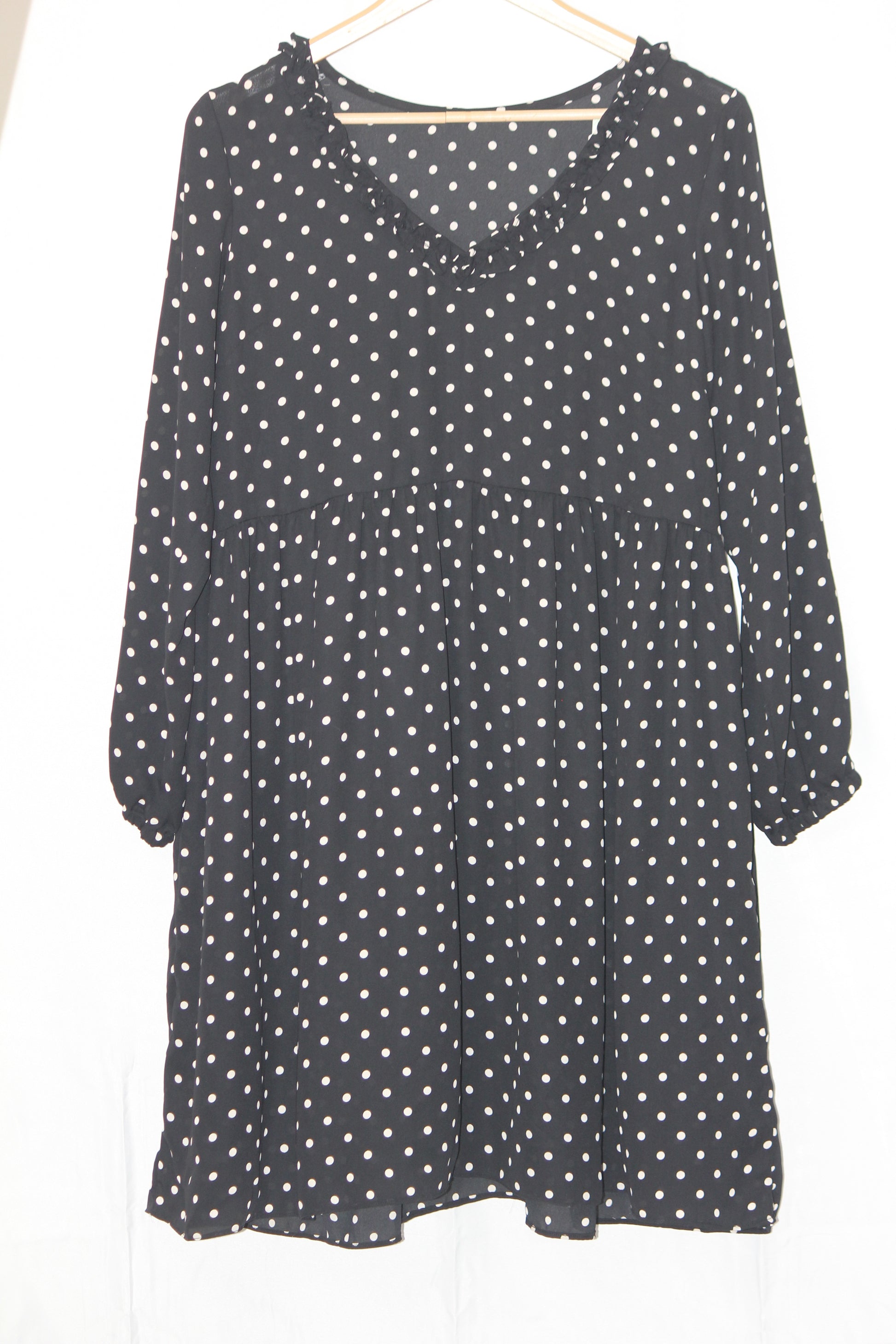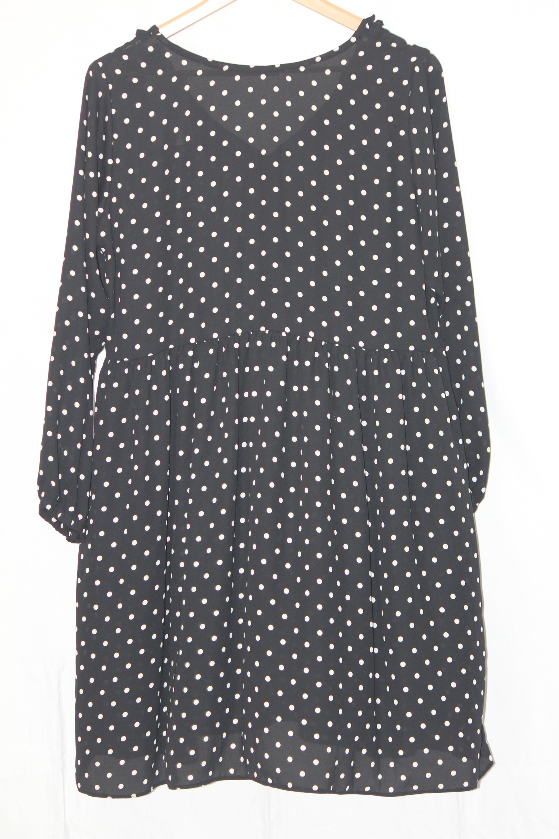 Thriftyfy Dress - Medium, Black with White Polka Dots